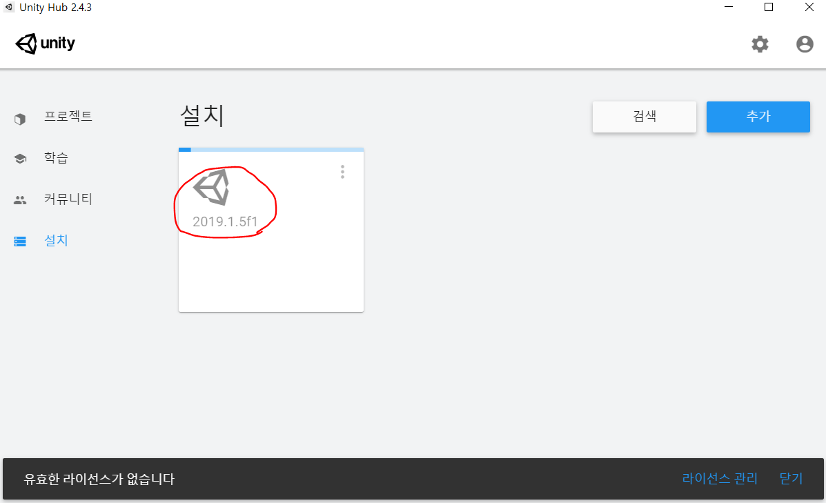 Unity 다운로드 아카이브를 통해 다운받아야 한다.